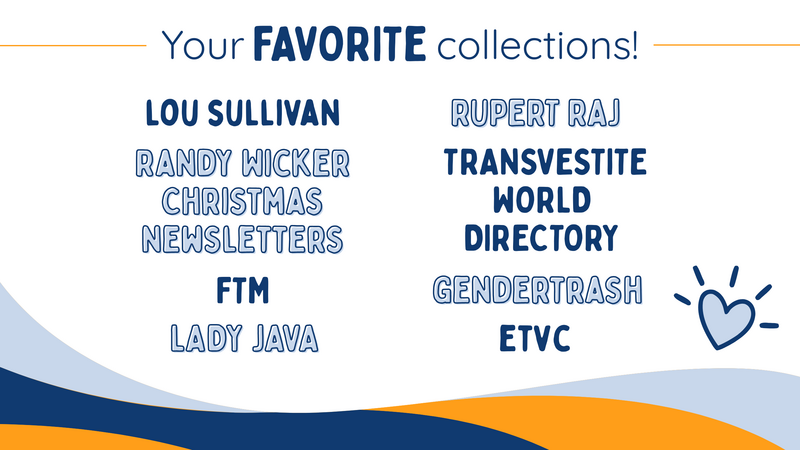 Since its launch in 2016, the Digital Transgender Archive has been working to preserve and make accessible the histories of transgender and gender-diverse people. This page details the DTA's growth throughout the past 10 years and we invite you to celebrate this milestone with us!