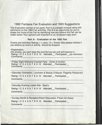 12. 1992 Fantasia Fair Evaluation and 1993 Suggestions Form