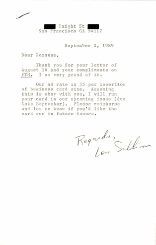 Correspondence Between Lou Sullivan and Roxanne Cherry (August-September 1989)