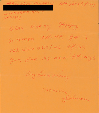 A Birthday Card From Marsha P. Johnson to Randy Wicker