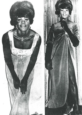 Collection: Miscellaneous Photographs Institution: The ArQuives Creator: Date: Unknown Topics: BIPOC, Black LGBTQ+ people, Halloween (LGBTQ+ culture), LGBTQ+ people of color, Singing Description: 2 pictures of the same person: in the first picture the person is posing for the camera wearing a gown and shoulder length black gloves. The second picture has the person singing into a microphone ...