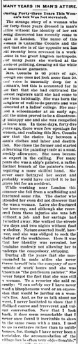 Collection: Newspaper and Periodical Clippings (Pre 1900) Institution: Digital Transgender Archive Creator: Date: Nov. 9, 1883 Topics: Clothing, Crossdressing, Marriage, Painting, Passing (Gender), Separation Subject: Frank Dubois, Gertrude Fuller, H. L. Morrison, S.J. Hudson Description: Cooperstown Courier (Cooperstown, ND) -
