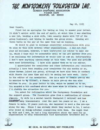 Letter Describing the Work of the Montgomery Foundation Inc.