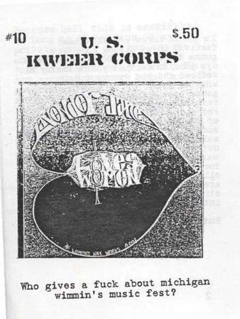Collection: Zines Institution: Queer Zine Archive Project Creator: Tagonist, Anne Date: Dec. 1, 1997 Topics: Butches, Femmes, Gender expression, Lesbians, LGBTQ+ comics, LGBTQ+ fiction, MtFs, Safer sex, Sex (Act), Transgender people Subject: Bitch Hips, Camille Paglia, Fierce Femme, Like Cinderella, M2B, Ped Xing, Sister Subverter, Watermelon Woman -