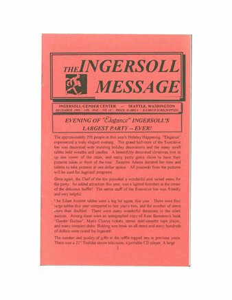 Collection: The Ingersoll Message Institution: Sexual Minorities Archives Creator: Butler, Pat Date: Dec. 1996 Topics: Awards, Crossdressers, Crossdressing, FtMs, Government, Heterosexuals, LGBTI community, Marriage, Politics, Religions, Roman catholicism, Transgender people Subject: 1996 FtM Conference of the Americas, Emerald City, FTM Conference Committee, FTM Conference of the Americas, Hands Off Washington Campaign (HOW), Holiday Magic, The Ingersoll Little Gray Books, Washington Citizens for Fairness (WCF) -