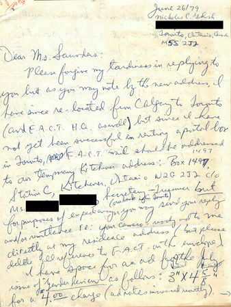 Correspondence from Nicholas Ghosh to Lou Sullivan (June 18, 1979)