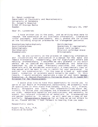 Letter from Rupert Raj to Dr. Bengt Lundstrom