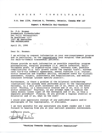 Letter from Rupert Raj to Dr. F .G. Bouman (April 20, 1990)
