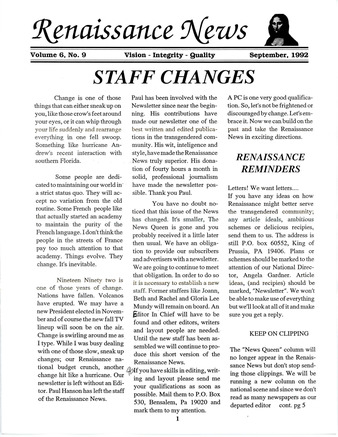 12. Renaissance News, Vol. 6 No. 9 (September 1992)
