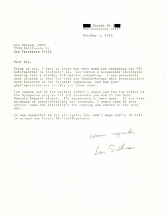 Correspondence from Lou Sullivan to Lin Fraser (October 4, 1989)