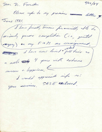 Correspondence from Lou Sullivan to Donald Laub (June 2, 1981)
