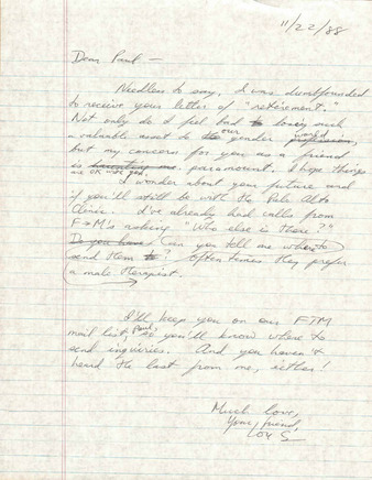Correspondence from Lou Sullivan to Paul Walker (November 22, 1988)