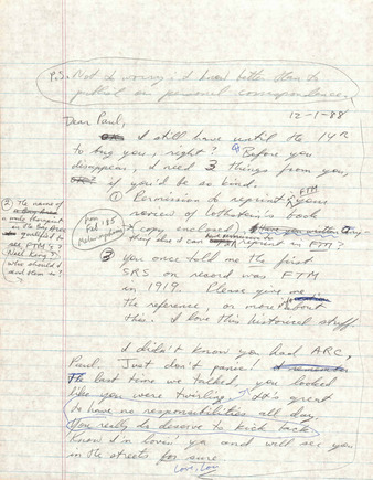 Correspondence from Lou Sullivan to Paul Walker (December 1, 1988)