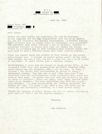 Correspondence from Lou Sullivan to Alice Webb (July 24, 1990)