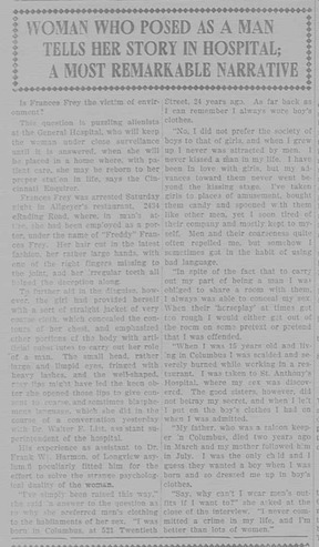 Woman Who Posed As A Man Tells Her Story In Hospital; A Most Remarkable Narrative