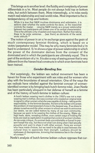 Collection: Newspaper and Periodical Clippings (1950-2000) Institution: Independent Voices Creator: Nichols, Margaret Date: 1987 Topics: Autonomy, Butch-femme relationships, Butches, Clothing, Feminism, Gender role, Lesbian community, Lesbian culture, Patriarchy, Sexual relationships, Sexual roles, Sexuality, Soft butches -