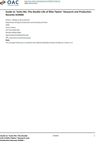 "Suits Me: The Double Life of Billy Tipton" Research and Production Records
