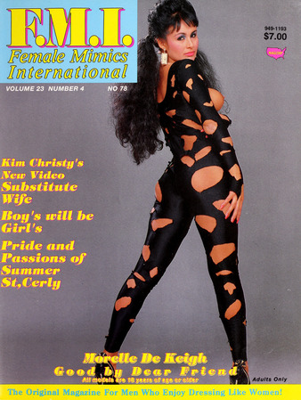 Collection: Female Mimics International Institution: Transgender Oral History Project Creator: MAGCORP, the Magazine Corporation of America Date: 1993 Topics: Actors, Crossdressers, Crossdressing, Discos, Drag, Drag queens, Gender bending, MtFs, Nude photographs, Photographic models, Transgender culture, Transgender identity, Transgender people Subject: Morelle De Keigh Description: Also known as Female Mimics International and FMI Female Mimics International. ; On item cover: "The original magazine for men who enjoy dressing like women." ; Contents: Editorial -- Morelle De Ke... -