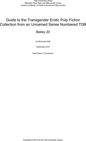 Guide to the Transgender Erotic Pulp Fiction Collection from an Unnamed Series Numbered TDB