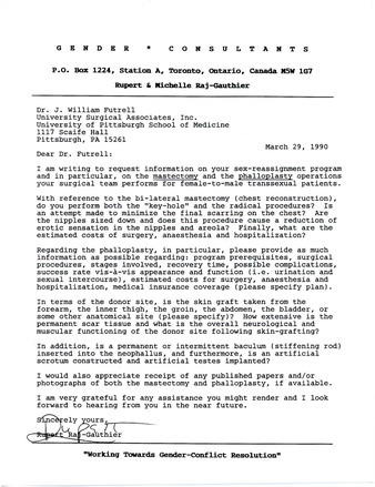 Letter from Rupert Raj to Dr. Larry Lipschultz (March 29, 1990)