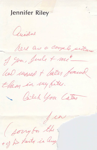Description: Letter from Jennifer Riley to Ariadne Kane, dated 1981. Includes two photographs.