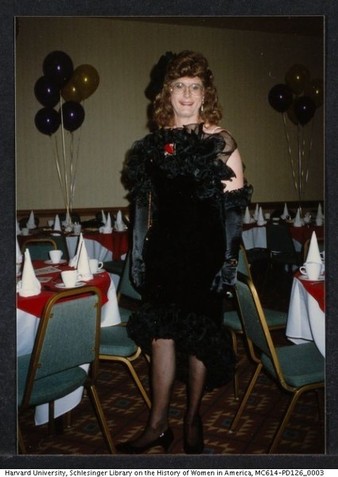 Collection: Fantasia Fair: Photographs Institution: Schlesinger Library, Radcliffe Institute for Advanced Study, Harvard University Creator: Date: Jan. 1, 1991 Topics: Gender identity, Portraits, Transgender people Description: By clicking the selected thumbnail, you will be forwarded to more Fantasia Fair photographs that are not currently available on the DTA