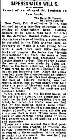 Impersonator Willis: Arrest of an Alleged St. Louisman in New York