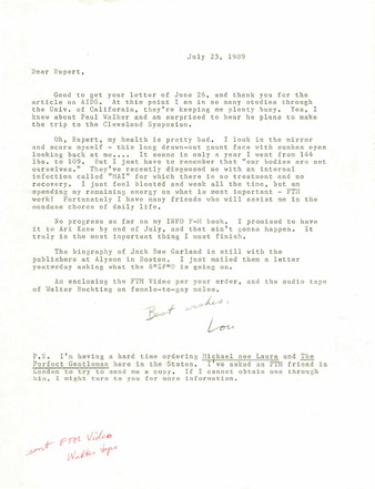 Correspondence from Lou Sullivan to Rupert Raj (July 23, 1989)