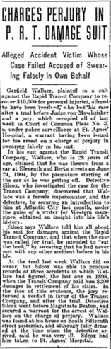 Charges Perjury in P.R.T. Damage Suit: Alleged Accident Victim Whose Case Failed Accus...