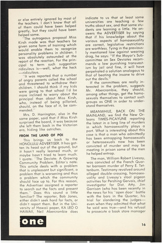 Collection: Newspaper and Periodical Clippings (1950-2000) Institution: Independent Voices Creator: Cutler, Bill Date: Feb. 14, 1972 Topics: Drag queens, Female impersonators, Gay community, Gay liberation, Homosexuality, Lesbians, Media, Television Subject: Gay Liberation Front, Mark Rubin, Phil Donahue, Rev. Kennedy -