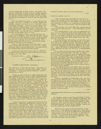 Collection: Newspaper and Periodical Clippings (1950-2000) Institution: Independent Voices Creator: Date: Aug. 1, 1963 Topics: Crossdressing, Gay men, Gender realignment surgery, Homosexuality, Lesbians, LGBTQ+ partners Subject: EROS, Jaqueline Dufresnoy, John Browning, Samuel Barber, Sweedish National Radio -