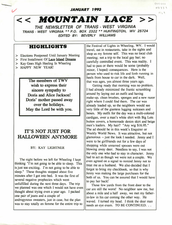 Mountain Lace: The Newsletter of Trans- West Virginia (January, 1993)