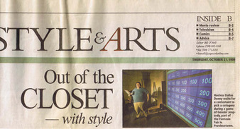 Collection: Newspaper and Periodical Clippings (1950-2000) Institution: Digital Transgender Archive Creator: Carroll, Felix Date: Oct. 21, 1999 Topics: Crossdressers, LGBTQ+ events Subject: Brenda Vida, Dallas Denny, Fantasia Fair, Jayne Robinson, Lisa Mitchell, Miqqi Alicia Gilbert, Unitarian-Universalist Meetinghouse Description: A clipping about Fantasia Fair in Provincetown, Massachusettes and the people who attend it. -