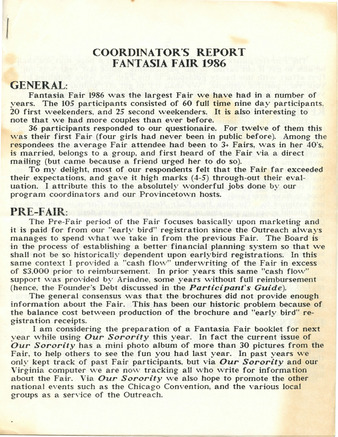 Coordinator's Report Fantasia Fair 1986