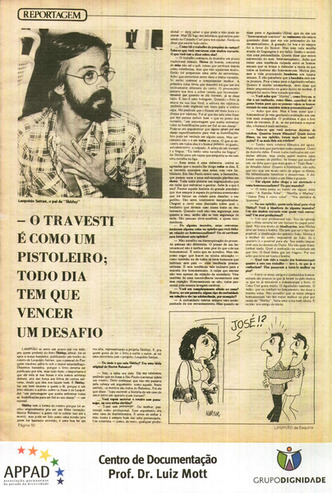 Collection: Newspaper and Periodical Clippings (1950-2000) Institution: Grupo Dignidade Creator: Bastos, José Fernando Date: Feb. 1980 Topics: Gender realignment surgery, MtFs, Transgender characters, Transitioning (Gender), Transsexual people Subject: Eloína, Le Carrousel, República dos Assassinos (film) -