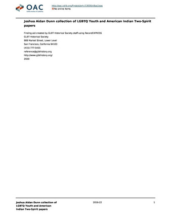 Joshua Aidan Dunn collection of LGBTQ Youth and American Indian Two-Spirit Papers