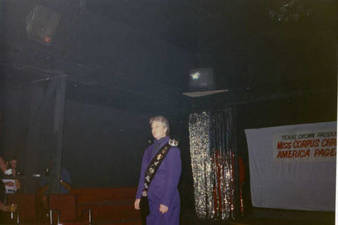 Collection: Victor Lopez and Rudy Cardona Photograph Collection Institution: The University of Texas at San Antonio (UTSA) Creator: Lopez, Victor Date: 1996 Topics: Pageants Description: The pageant was produced by Texas Crown Productions and was part of the Miss Gay Texas America pageant, the largest and oldest pageant system for female impersonators in the state of Texas. -