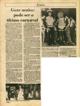 Parade of prisoners, some in female dress, with prison buildings in background, San Qu...