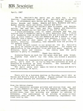 EON Newsletter (April, 1987)