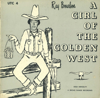 Collection: Ephemera Institution: JD Doyle Archives Creator: Date: Unknown Topics: Drag, Female impersonators, Gender expression, LGBTQ+ theater, Performance art Subject: An Evening in Copenhagen, Bourbon 100-Proof, Claque-Claque, Don't Call Me Madam, Horse Opera, Ray Bourbon, The Railroad's Coming Thru, To Hell With The Range, Ugh!, Where Does The Difference Come In?, You're Stepping on My Eyelashes Description: Album on vinyl by Ray Bourbon titled "A Girl of the Golden West." Content Warning: Offensive visual depiction of Indigenous people.