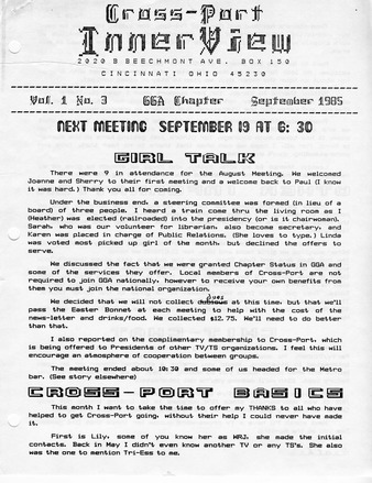 Cross-Port InnerView, Vol. 1 No. 3 (September, 1985)