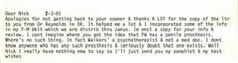 Correspondence from Lou Sullivan to Nicholas Ghosh (February 3, 1981)