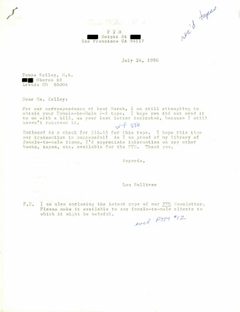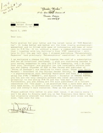 Correspondence Between Lou Sullivan and Tomye Kelley (March-July 1990)