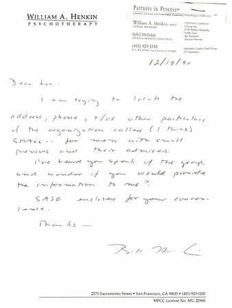 Correspondence from William Henkin to Lou Sullivan (December 14, 1990)