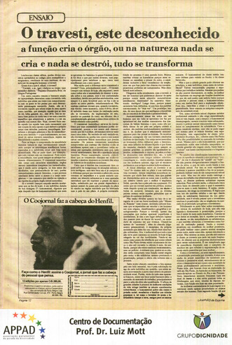 Collection: Newspaper and Periodical Clippings (1950-2000) Institution: Grupo Dignidade Creator: Penteado, Darcy Date: Mar. 1980 Topics: Crossdressers, Employment discrimination, Femininities, Gender identity, Gender realignment surgery, Gender role, Hormones, Sexual relationships, Sexuality, Transgender community, Transitioning (Gender), Transsexual people -