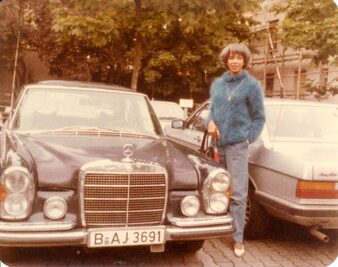 A Photograph of Marlow Monique Dickson Standing Next to a Car