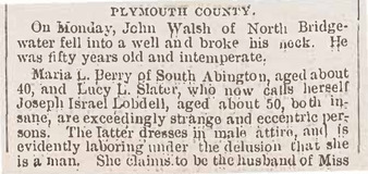 Collection: Miscellaneous Photographs Institution: American Antiquarian Society Creator: Critcherson, G.P. Date: 1800 to 1899 Topics: African Americans, BIPOC, Black LGBTQ+ people, Crossdressing, Femininities, LGBTQ+ people of color, Masquerades Description: William Brown, a wealthy Black businessman in Worcester, MA in the 19th century, wearing a dress. Part of the Brown Family Papers Collection, call number Mss. Boxes B. -