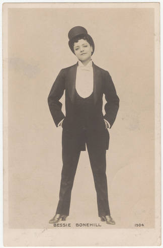 An actor in pantomime drag. Photographic postcard by Hana Studios, 190-.