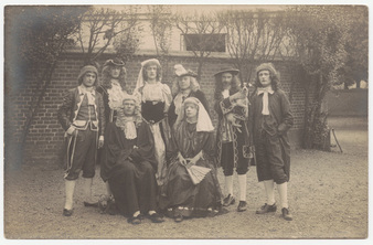 Louis Vincent in drag holding a drinking glass. Process print, ca. 1905-1910.