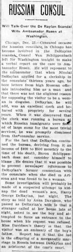Russian Consul Will Talk-Over the De Raylan Scandal With Ambassador Rosen at Washington
